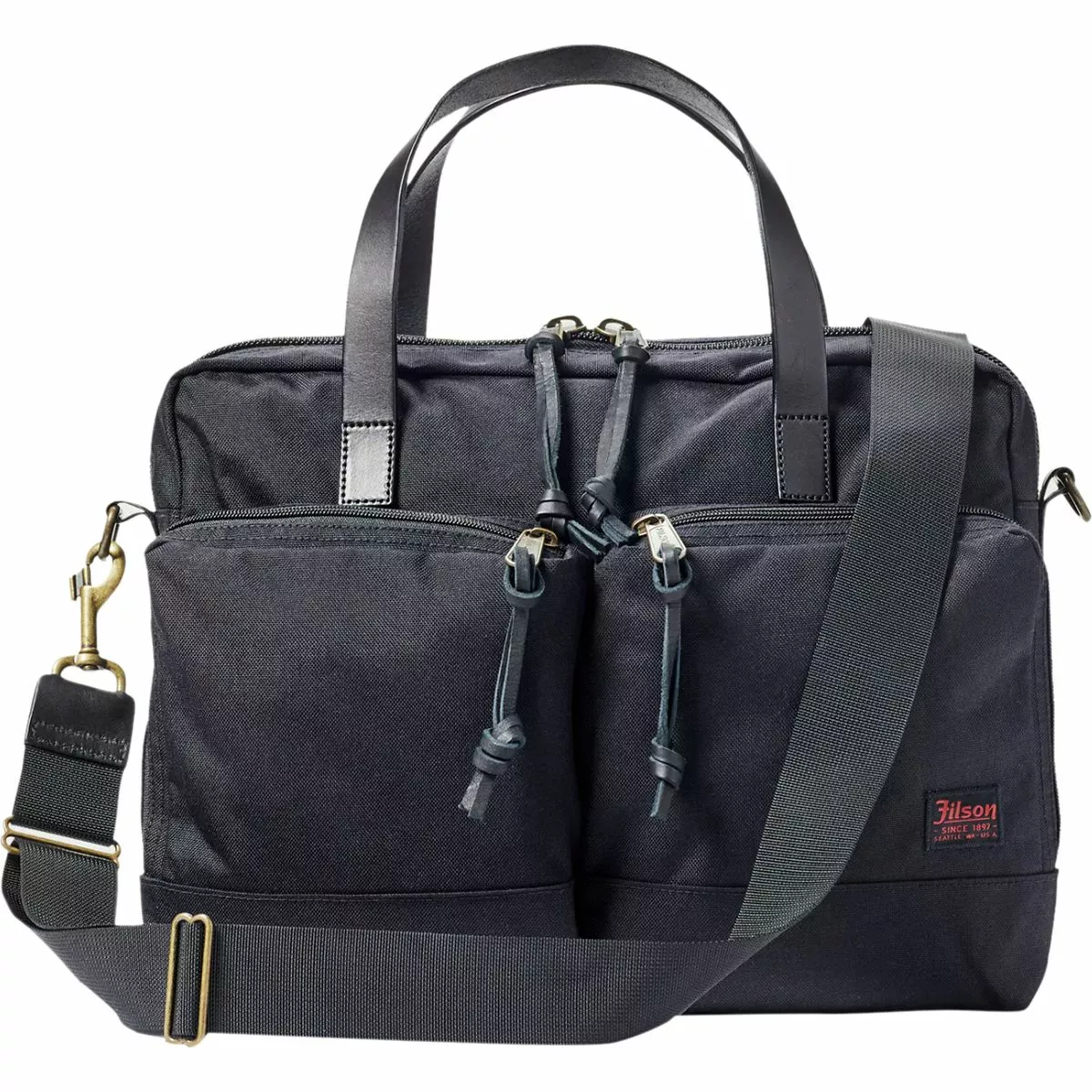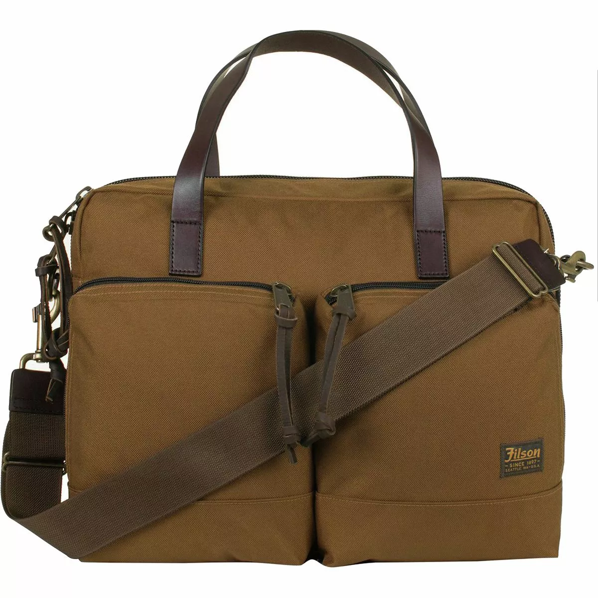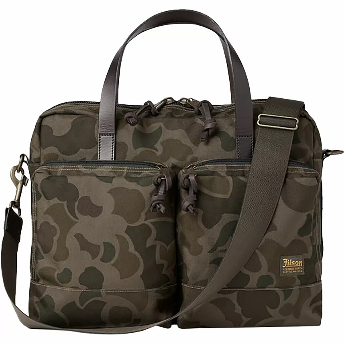 Filson’s Dryden Briefcase was built from the best attainable materials for maximum durability while traveling. Whether you’re roaming the streets of a foreign city or you’re on a work trip across the country, this briefcase will keep your laptop and other belongings safe while you wander. A trolley strap on the rear slips over the handle of rolling luggage, making airport travel simple and efficient. And a reinforced double layer bottom resists water in case you encounter rain outside the airport.