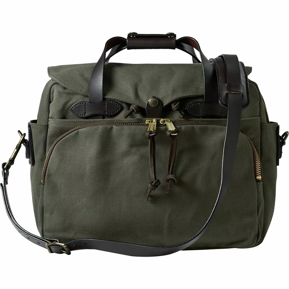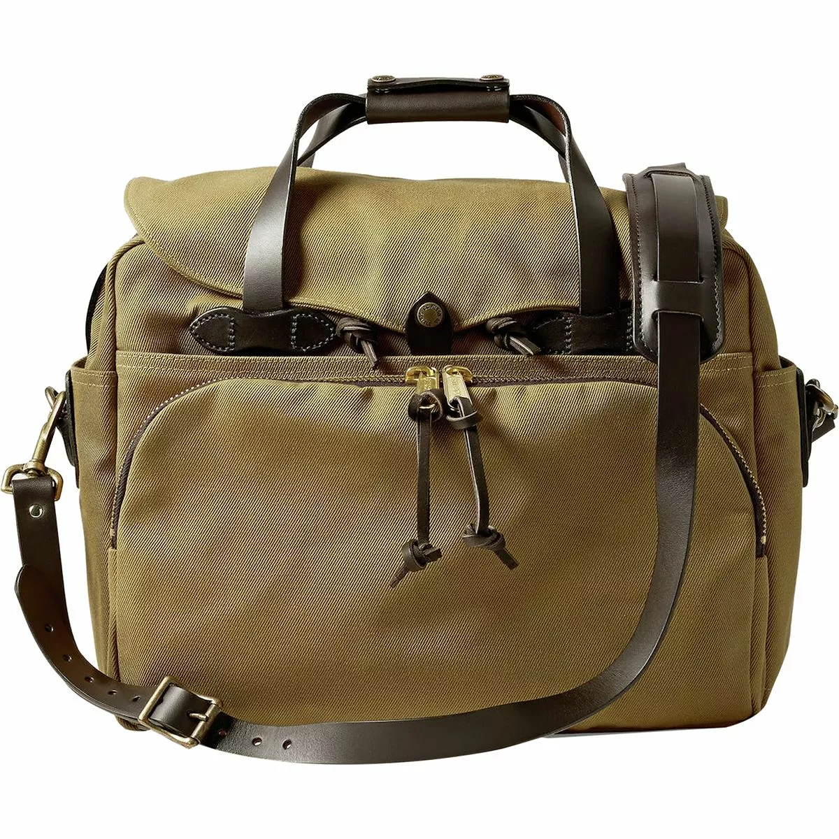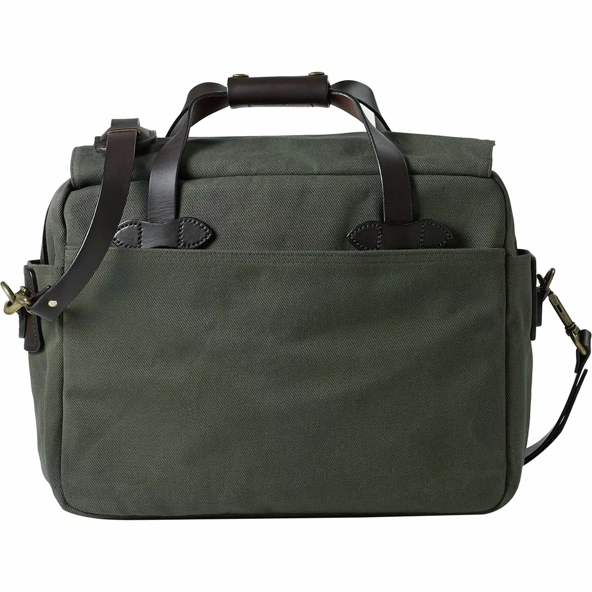 Filson used industrial-weight rugged twill, genuine bridle leather, and an oil finish to make the Twill Padded Laptop Briefcase. When you’re taking plans to the field office or heading downtown for a desk-based day, the Filson Twill Padded Laptop Briefcase totes your tech and protects your papers. Ruggedly durable cotton twill resists drizzles and dirt due to the oil finish, and it wipes clean if someone is slinging mud your way. A padded compartment saves your laptop or tablet from the bumps and bruises of travel and leaves sufficient space for legal pads, documents, or carefully folded engineering plans.